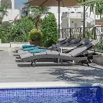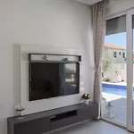 Die 5-Zimmer- Luxury Villa -Heated Pool -Jacuzzi bietet mediale Annehmlichkeiten wie einen Flachbildfernseher mit Satellitenkanälen und ein Fernsehen mit mehreren Kanälen sowie hat ein Bügeleisen/Bügelbrett und eine Klimaanlage für die Gäste. Gäste können auch einen Patio und einen Balkon sowie ein Sofa genießen. Das Badezimmer ist mit einer getrennten Toilette und einer Dusche ausgestattet und verfügt auch über einen Haartrockner und Handtücher.